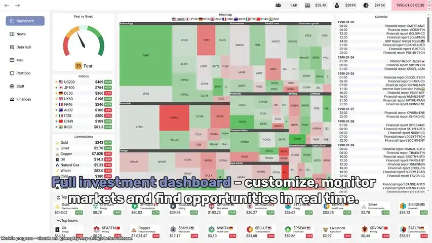 完整描述(简体中文)沉浸在真实的市场模拟中,每一个决策都至关重要!《Investment Fund Game》是一款单人沙盒模拟游戏,你将在其中扮演一位投资基金经理。你可以购买股票、债券、大宗商品,测试不同的投资策略,监控基金表现,并与采用不同策略的 AI 基金竞争。通过逼真的财务仪表板、财务报告和市场模拟,你将更深入地了解投资如何运作、如何构建投资组合,以及市场心理(恐惧与贪婪)如何影响决策。主要特色: 逼真的财务仪表板 – 像专业人士一样管理你的基金。 投资组合管理 – 在股票、债券、大宗商品等之间分散投资。 市场模拟 – 体验市场的波动、繁荣、泡沫和崩盘。 竞争对手 – 与采用不同策略的 AI 基金一较高下。 教育内容 – 游戏内的文章和策略指南帮助你学习投资概念。 排行榜 – 将你的基金表现与竞争对手进行比较,并跟踪你的长期成长。你能获取阿尔法收益,跑赢市场吗?还是恐惧与贪婪会摧毁你的投资组合?《Investment Fund Game》计划于 2026 年第二季度至第三季度以抢先体验形式推出。欢迎加入我们的 Discord 服务器,分享反馈,帮助改进抢先体验版本 —— 你可以在本商店页面的「链接」部分找到 Discord 图标。免责声明:本游戏为虚构模拟,仅供教育和娱乐之用。游戏中的公司、金融工具和市场数据均为虚构,不代表现实世界实体。本游戏不提供任何投资建议,任何相似之处纯属巧合