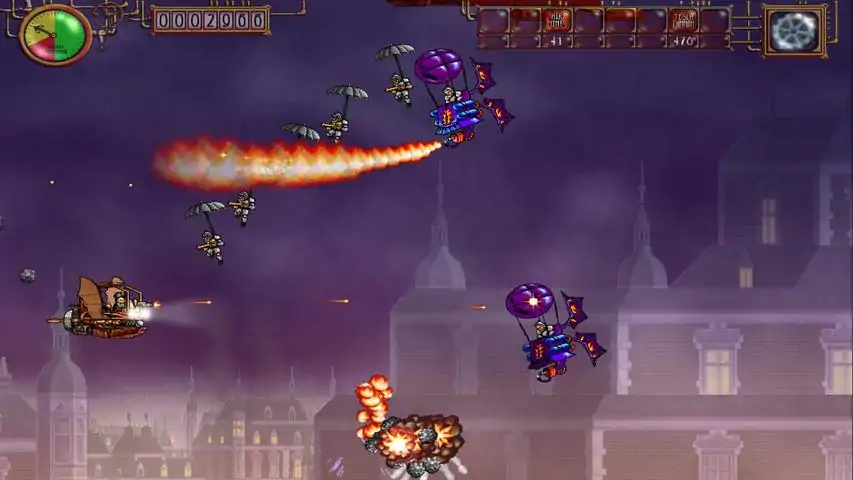 Crazy Steam Bros is a classical horizontal shoot'em up inspired by the gameplay of old arcades. Anton and Dupont are brothers, inventors, and a little mad also! With the help of their landlady, Miss Lily, they must defeat the evil Baron and their hordes of moustached soldiers. Fly the "SteaMobile" trough five levels of steampunk action. Traverse cities, jungles, caves and more. Collect Power-Ups for your machine and defeat the bad tempered bosses before the tea time! To play you can use the keyboard or a compatible gamepad, and Keys can be redefined at the options