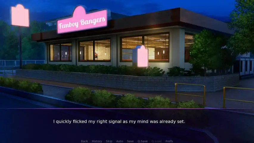 Femboy on MaleFriday night at 10pm and you feel like getting out of the house.A drive around town looking for an open pizza place will have to do, but your search is soon interrupted by a bright pink