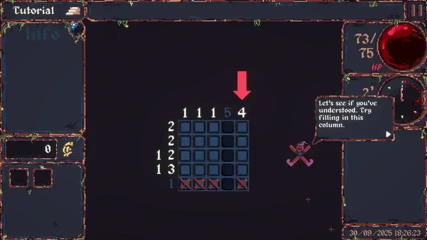 CiniCross is a mix between Roguelike and the puzzle game called Nonogram or Griddlers. It takes place in a retro dark fantasy