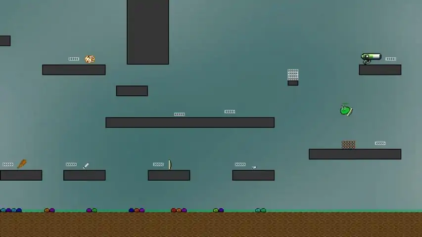 You are a slime, the weakest of the monsters, living in Gloopia. Squishing, slicing, and shooting his way to the top. You wield weapons, collects keys to unlock chests and power cells to power