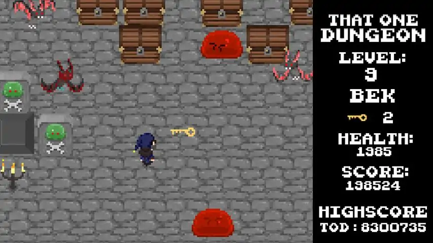 That One Dungeon is a fast-paced, pressure-intensive, infinite dungeon crawler!Pick Your ClassChoose from three distinct characters: Ranger(hunter), Wizard(mage), or Rogue(ninja)Explore The DungeonFind hidden secrets about the dungeon to uncover a hidden story behind every wallCombat The HordesMany monsters will come after you including slimes and