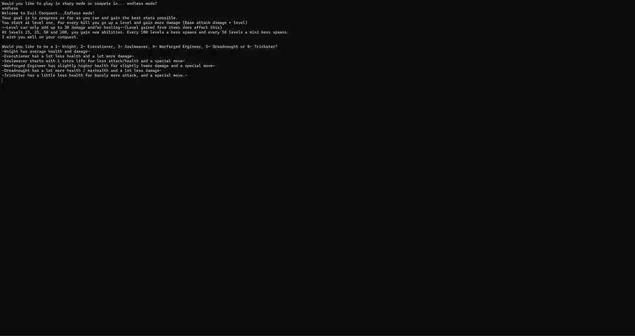 This game is a fun Text-Based Strategy RPG that features a story and an endless mode, crafting, forging, classes and more! Play more casually in story mode or play endless mode to solve puzzles and make the leaderboard! To get on the leaderboard, send me a video of you going to your stats page or just a screenshot of the page on the discord. If you die, the page that displays stats also counts!