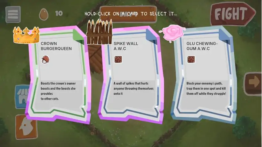 COTS is first and foremost a game about strategy. It’s a fun tower defense game where chickens are the protagonists of their story, and get to fight for their territory! Well, we say, chickens, but the characters in this game are Cots - chickens but better - with super unique abilities. Each Cot has a specific role and its assigned skills: one is a builder, the other a fighter, sniper, etc. With the eggs they lay as currency, buy buffs to boost your cots, or items to trap and attack enemies. The goal? Survive for as many nights as possible as waves and waves of predators invade your coop!