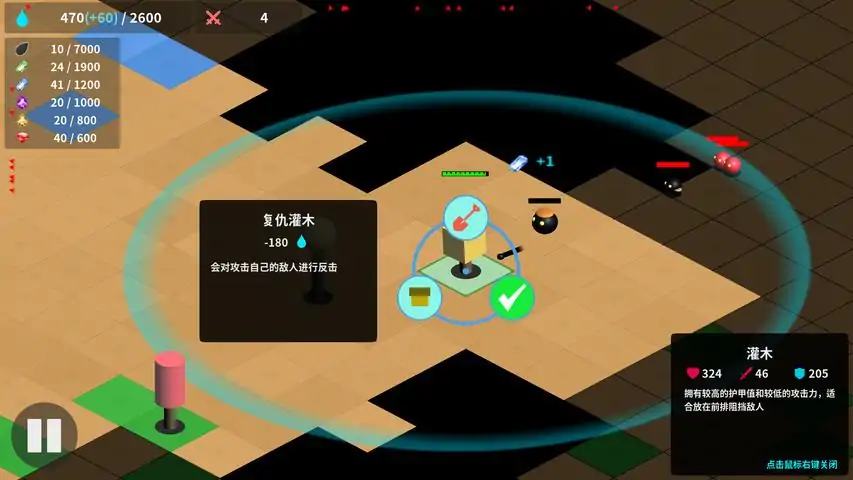 如果你喜欢塔防和基地建设游戏;如果你喜欢通过合理搭配的阵型击败海量的敌人;如果你喜欢简洁清爽的画面;如果你喜欢roguelike元素这就是你在寻找的游戏。现邀请各路小伙伴测试中,测试请加Q群:640594923,群主发放测试码。业余时间做游戏,群里一般晚上才能回复,请见谅哈。这是一片由黑暗统治的大陆,而你就是这片大陆上唯一的光,这就是黑暗森林;你要保护你的圣树,它是一切的生命之源;代表光明的树木组成坚实的防线,对抗着黑暗森林和来自黑暗的幽灵大军;你的策略、操作、意志将决定战局的走向。在黑暗森林中,每个关卡拥有精心定制的地形结构,但树木、怪物、资源都将随机产生,因而每次游戏都是一次新的探险;你将在每波敌人被击败时随机获得三个进化项,如何选择从而获得最适合的阵容将会影响战局的走向;你将在特定的波次获得安全撤离的机会,继续战斗固然收获更大,但如果错误评估形势导致全军覆没,那么你在这场战斗中也将一无所获;你在关卡中收集的资源将用于进化你的科技树,从而在后续的战斗中获得更强大的力量。请不要被简洁的风格所迷惑,虽然上手非常容易,但充满变化和挑战的战局绝对需要专心应对。