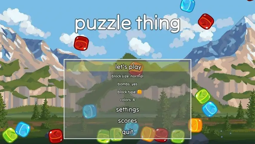 Puzzle thing is a simple and relaxing block-matching puzzle game, inspired by retro classics, such as Same-Game (さめがめ). match contiguous regions of colored blocks to score points the larger the region, the more points you gain! a chill soundtrack, featuring lo-fi, jazz piano, and acoustic guitar beats