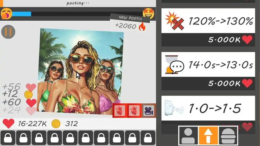 Step into the wild world of influencer culture, where fame is just a click away! In this idler clicker you will build your empire by growing your follower base and watch your popularity soar as the processes get automated. Every follower brings you closer to becoming the ultimate social media sensation. Why settle for slow and steady when you can dominate the game with powerful upgrades? Unlock and buy upgrades to supercharge your clicks, posting skills and follower power. Each upgrade brings new ways to grow your empire, making your journey to the top faster and more