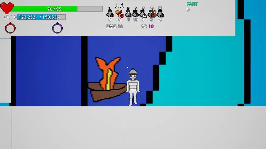 A challenging 2D side-scroller RPG game where you have only one life and death is permanent. Survive 40 interchangeable levels with your wits and consumables to get the Amulet of Yendor and escape the Dungeon with it. It is recommended to watch the tutorial before you play for the first time. It is also beneficial to read the wiki/consult help in the community in order to know the depths of the video game. There are 14 different zones that introduce 14 different sets of enemies. There are only 2 paths you can take in any level: the path to the Amulet, and the way back. You will begin play as Annette, an unarmed fighter. Defeating enemies is mandatory to survival. They have a small chance to give valuable consumables, an even smaller chance to give you even more valuable permanent rings that resist their respective elements, perhaps the smallest chance to give you armor that resist physical attacks, and give you experience to eventually gain you levels, that is, more health and damage. However, total annihilation is also not the best method for survival: Knowing which enemies you can take on is the key.