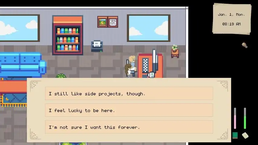 You play as Momo, a spirit who has passed away from physicality with regrets for the dreams she sacrificed. On the brink of her crossover, she's been given a second chance, to go back to age 21, when she was a young woman working at one of the world’s top tech companies, AlphaCorp. From the outside, she had everything she was told to want - success, stability, prestige. But this time, she'd like to choose