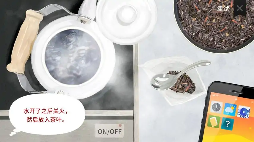 概要:游戏围绕红茶展开。玩家需要提高每天泡茶的技巧,通过收集游戏中的信息来解锁新的茶叶。根据日历安排每天的行程,管理角色们的健康和运势,保障他们的生命与安宁。 泡茶:使用准备好的工具进行泡茶。通过品茶后不断试验,调整温度、泡茶时间和茶叶用量,来追求完美的一杯茶。故事部分:游戏讲述了被诊断出只剩几个月生命的青年“悠路”,以及执着于为他泡好红茶的男高中生“千寻”之间的日常生活。故事以现代京都为背景,描绘了两人共同度过的时光以及剩余的日子,时而静谧,时而幽默。游戏特色:与多数咖啡经营类游戏注重多样化的经营和待客玩法不同,本作品专注于为特定的一个人泡茶。玩家不仅可以在游戏中体验泡茶的过程,还可以在现实中按照游戏步骤进行复刻,理论上能够泡出与游戏中一样的茶。-本作会出现日本茶与中国茶-不拘泥于礼节,享受品茶时间-简单的点击、拖拽操作-适合红茶・泡茶新手-理论上适合全年龄段※本作品采用直接将茶叶投入水煲等非常随意的泡茶方式。 我们计划将支持中文。请添加到steam愿望清单上吧。