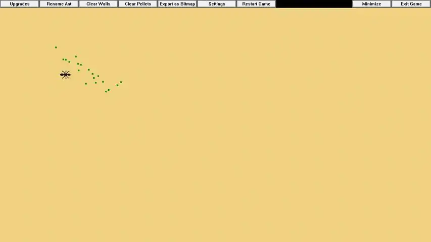 Overview:Have you ever wanted your own virtual farm of pix-ants? Probably not yet, but now is your chance to do just that! Grow your colony of ants from the ground up and watch as they autonomously explore the screen, eating pellets as they encounter them, earning you the ability to unlock new ant colorations and upgrade their automatic feeder! If all that automatic feeding makes you feel too distant from your ants, you can always turn it off and feed them yourself. Not only that, but you can also give them names, manually move them around the farm with drag and drop, lead them with the mouse, or steer them with the keyboard. You can also build obstacles, mazes, housing areas, and draw shapes of all sorts for them to explore. This will keep your ants plenty entertained for hours to come, and they will enjoy exploring every accessible inch of your