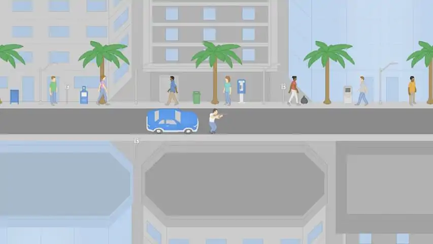 INFO Take on the role of a former bank robbing getaway driver as you explore a fully realized city. Cruise through bustling downtown streets, beaches, deserts and more in a handful of vehicles including sedans, sports cars, SUVs and others. Go for a drive or unleash your weapon and cause mayhem across the city. You own this town! Be sure to view the controls when running the game to know how to play. FEATURES -A fully open 2D sprite-based world. -Cities, beaches, deserts and other explorable areas. -Hijack and drive vehicles, from sedans, sports cars, SUVs and more. -Pedestrians such as joggers, hikers, construction workers and others. -Wildlife including deer, coyotes, rabbits and more. -Classic shoot-'em-up style gameplay. ADDITIONAL INFO You can always view the in-game controls if you are stuck or do not know how to play the game. This game is meant to be played on Windows platforms using the mouse and keyboard. The game does not feature any kind of controller support. Please keep in mind that this game is meant for a mature audience. Thanks for playing!