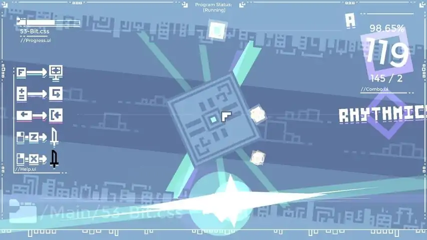 In Parse-O-Rhythm, you play as an AI with only one goal: Slash the errors out of files! Utilize nothing but the mouse and two buttons to slice and dice your way through positive and negative errors that permeate the files you go