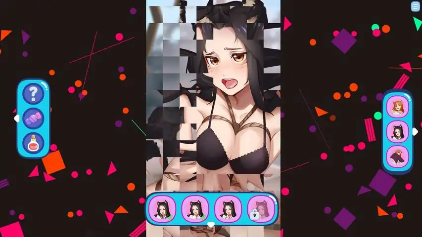 《美夜与绫:工口拼图18+》是一款引人入胜的拼图游戏,玩家通过旋转和组合拼图碎片来拼凑可爱的猫娘图片。完成关卡后,收集的图片将被添加到画廊中。游戏讲述了两位猫娘——美夜·猫原和绫子“绫”月宫——通过古老魔法相遇的故事。游戏玩法游戏围绕关卡进度展开:在开始时,女主角们穿着可爱的服装登场。随着游戏进展,解锁更多暴露的服装。女孩们与玩家互动,伴随游戏进行配音和音效。在画廊中,您可以激活额外效果,欣赏收集的图片。游戏特色:手绘角色艺术。动态图片。角色配音。技能:溅射: 移除若干未完成的拼图碎片。自动恢复。超级溅射: 移除大量拼图碎片。随游戏进度充能。高亮: 突出显示未完成的碎片。流星: 定期掉落星星,帮助完成缺失的碎片。影踪: 有时会与您的操作一起翻转碎片。画廊: 允许玩家查看收集的艺术作品并激活音效。角色Miya Nekohara种族: 半猫半人。外貌: Miya娇小而优雅,拥有短黑色耳朵、蓬松的尾巴和大大的金色眼睛。她的长黑发带有蓝色光泽。平日里,她穿着短裙的校服,周末则偏爱舒适的毛衣。性格: 安静、害羞且体贴。喜欢热牛奶、编织和安静的夜晚。有时,她的猫科本能会占上风,这让她感到尴尬。特殊特征: Miya听力出众,能预感危险。当紧张时,她会摆弄尾巴或喵喵叫。Ayako“Aya”Tsukimiya种族: 来自古老“月之守护者”氏族的猫娘。外貌: 高挑健美,拥有短耳朵和蓬松的尾巴。Aya偏爱运动风格:飞行夹克、运动鞋和短裤。性格: 活泼、精力充沛且大胆。天生的保护者,愿意为亲人冒险。尽管如此,她梦想着远离氏族职责的平静生活。特殊特征: Aya擅长攀爬,夜视能力出众。她的敏捷和速度常在危险情况下救她于水火。体验令人惊叹的单人和双人艺术作品,揭示这两位迷人女主角的个性和故事!