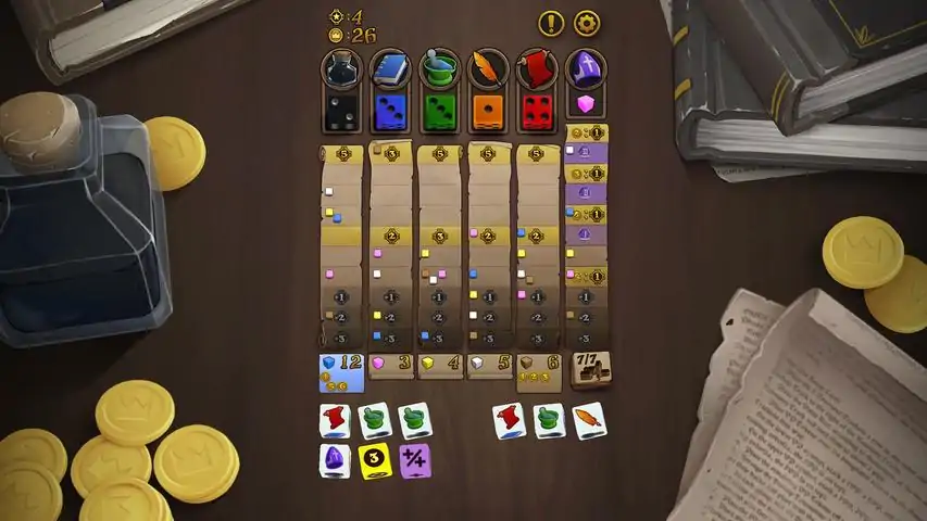 Biblios Dice is a digital adaptation of the dice game by Dr. Finn. In it you are working as medieval monks to produce illustrations and improve the prestige of your abbey. In Biblios Dice players compete by rolling dice and making tactical decisions on which of several resource tracks to pursue. Each of the five different resource tracks change value based on player decisions, altering the total value they are worth. This means players will want to both improve on the different tracks while simultaneously increasing the value of the tracks they're pursuing and devaluing those of others. When the time comes for the mule to make it to market, which happens every few rounds, dice are auctioned off to the highest bidders providing a rich set of resources so long as money isn't over-spent. Favor with the Bishop, its own track, will also significantly affect total prestige based on how much money the player earns.