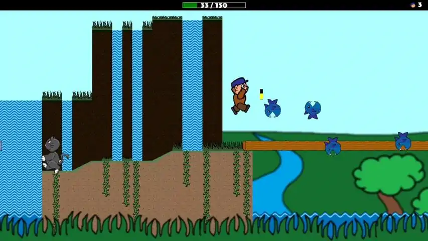 DAB 12 is the sequel to the eleven-game series 1trickPwnyta created in her teenage years, and is the first of the series to be published online. In this 2D platforming action-adventure game, you control Dab, the hero of the universe, as he traverses the various enemy-filled biomes of the planet Midhia, including the forest, the volcano, and the jungle island, to defeat the business suit-wielding Capitilizts. Collect powerups to increase your health and attack power, and use your trusty spear to vanquish The Capitilizts, skeletons, sentient mushrooms, massive rock golems, and more!