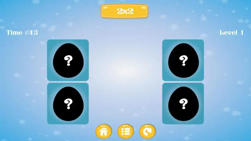 A game in the classic "memory" genre. The images of eggs are laid out on the playing field, your task is to find paired ones. For speed and the least number of misses you get bonus points. You can choose between playing fields of varying difficulty. More images - more load on your memory. Good game.