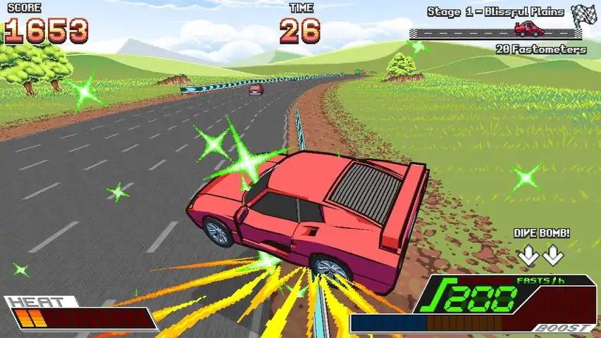 Where are we going? As individuals... as a species... what awaits us at the end of this road? Is there an end? Was there an beginning? Does this road symbolize real life in the sense that there's no turning back? And how does pineapple juice fit into all this? Maybe I should just shut up, Buck Up And Drive!Features:- Endless driving game inspired by arcade classics, with simple yet intense gameplay featuring a total slap in the face of realism. And a kick in the spleen, too!- Procedurally generated track with multiple environments to visit, ranging from the somewhat realistic to the completely absurd. GO TO HELL!... literally!- PINK. BACKFLIPPING. TRUCKS. ON THE FUCKING MOON.- Go 1v1 against another player (or a CPU) in a fighting mode. With cars. I dunno either, I came up with it while in the shower.- Customizable car decals through external image files. Put "eggplants" all over the cars, for all I care!- Controls for both game modes are 8 directions and one button. Play one-handed, if you want! Keep your other hand for... holding orange juice! Yes!- Available for both Windows and Ubuntu (other Linux distros may work).
