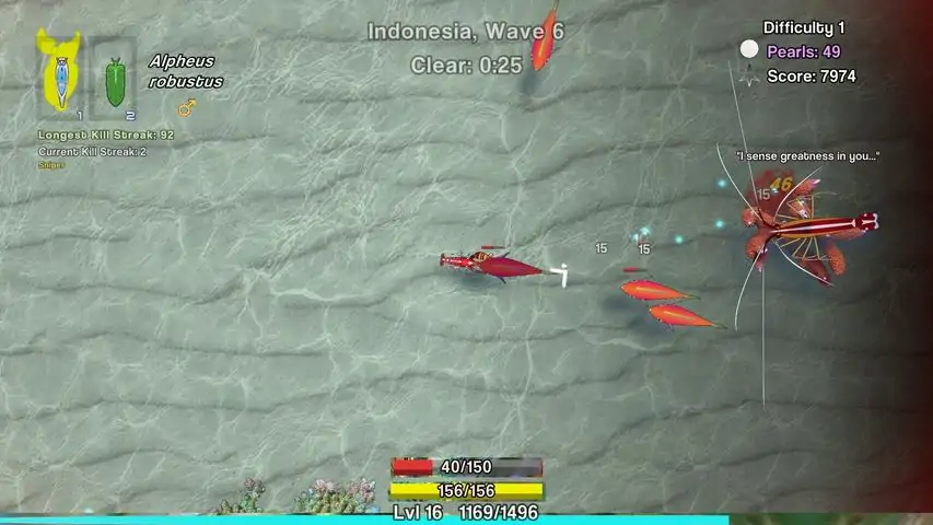在这个独特的混合游戏类型中,扮演一只手枪虾,向成群的水下敌人射出泡泡!您将获得经验值来升级您的甲壳类动物并选择升级,例如攻击伤害或移动速度。打开牡蛎来收集珍珠,然后在奔跑后用来解锁新的虾和武器!自上而下、2D、矢量艺术和水下摄影。双摇杆多向射击游戏,Roguelite。(几位用户的评论都是私人朋友的。)