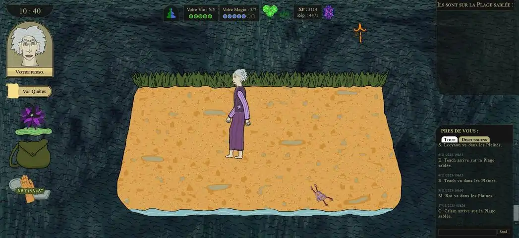 Un MMORPG gratuit ( free-to-play ) dans un univers imaginaire. Nécessite peu de ressources graphiques et jouable via l'application Steam ou par navigateur sur PC ou Smartphone. Devenez apprenti magicien, intégrez l'école de magie Erentis et spécialisez-vous dans l'une des quatre magies élémentales pour élucider le mystère lié aux esprits frappeurs. De nombreuses activités en solo vous attendent : quatre territoires à explorer en monde ouvert, rencontrez des personnages haut en couleur et approfondissez vos liens avec eux, des combats PVE stratégiques en tour par tour, de la récolte, du farm et du craft, de nombreuses professions tel que l'alchimie, l'enchantement, l'herborisme, la guérison et la cuisine, et des donjons remplis de monstres à traverser façon roguelike. Vivez l'expérience d'un MMO : commercez avec les autres joueurs et enrichissez-vous, intégrez une guilde et faites croître sa puissance, et entretenez l'environnement et l'académie pour éviter leur dégradation. Un jeu vidéo indépendant aux graphismes 2D originaux et uniques, régulièrement mis à jour avec plein de nouveautés. Aurez-vous l'audace d'aller au bout de cette aventure ?