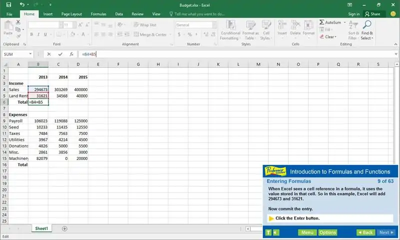 Professor Teaches Excel 2016 is a computer training course developed by experts to help you learn the features of Excel 2016. Unlike other training courses, Professor Teaches provides a realistic simulation of the software, so you can practice and apply what you learn right away. Learn Excel 2016 with hours of interactive, hands-on training lessons and exercises. What is Microsoft Excel 2016? Excel 2016 is the latest version of this popular spreadsheet management program developed by Microsoft. This powerful program allows you to analyze, manage and share data in more ways than ever before. With the analysis tools, you can track and highlight important data trends and share data. What Are the Benefits of Learning Microsoft Excel 2016? • Discover how to create spreadsheets quickly • Learn how to analyze data and share information • Learn how to use critical information to make business decisions Excel 2016 – Over 80 Lessons! Our extensive computer training course will cover the following topics: • Getting to Know the Excel Window • Navigating a Workbook • Creating Workbooks • Entering Text, Numbers, and Dates • Moving and Clearing Data • What are Formulas and Functions? • Copying and Moving Formulas • Using Statistical Functions • Using Linked Values in Formulas • Introduction to Formatting • Changing Cell Alignment • Inserting and Deleting Rows and Columns • Hiding Worksheet Components • Copying and Moving Worksheets • Splitting and Freezing a Worksheet • Previewing and Printing the Worksheet • Arranging Multiple Workbooks • Saving Workbooks in Different Formats • Adding a Hyperlink • Saving a Workbook as a Web Page • E-Mailing a Workbook • Exploring the Interface • Signing in with Microsoft Accounts Features of Professor Teaches Excel 2016 • Practice in a Realistic Simulation of the Software • Hundreds of Learning Topics • 4 to 8 Hours of Training per Course • Realistic Simulations • Beginner to Advanced Topics • Self-Paced Learning Objectives • Introductions and Summaries • Interactive Exercises • Professional Voice Narration • End-of-Chapter Quiz Questions • Check marks for Completed Topics • Glossary, Index, and Search • Professor Answers for Instant Training Benefits of Professor Teaches Excel 2016 • Accurate screen presentations, menus, and buttons provide an easy transition to the real application • Step-by-step interactive exercises help you achieve high retention rates • Practical exercises and examples make learning easy • Professional voice narration assists retention • The most realistic, interactive & complete training