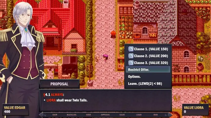 To save the love of her life from a deadly illness, Liora must ask for the help of Edgar, an ambitious mercenary who wields the power of magical contracts - once agreed upon, the absolute rules of these contracts cannot be disobeyed. Selling away her dignity piece by piece... Can Liora remain who she is, or will she succumb to Edgar, slowly transforming into his ideal woman?GameplayExplore dungeons, strategically manage your resources, and engage in turn-based battles in this fantasy RPG. However, unlike traditional RPGs, the story's main villain and antagonist is a member of your own party. He will not listen to your commands and seek to fulfill his own ambitions. The only way to obtain his cooperation: Agree to sign his magical