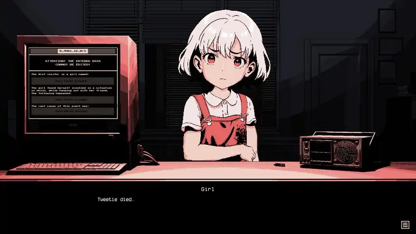 Outside the door – a visual novel with elements of mysticism and a gripping storyline taking place within an office. On behalf of a temp who turned out to be at this office for some odd reason you have to listen to the stories of a few visitors and having puzzled out the details of their destinies deliver your verdict before their cases will be passed on. To make things even worse, you’ve got no memories of your past and the only assistant in this weird place is a featureless voice on the radio. Should you do your job in good faith or whether you can trust anyone here is up to you but someone has to be responsible for decisions