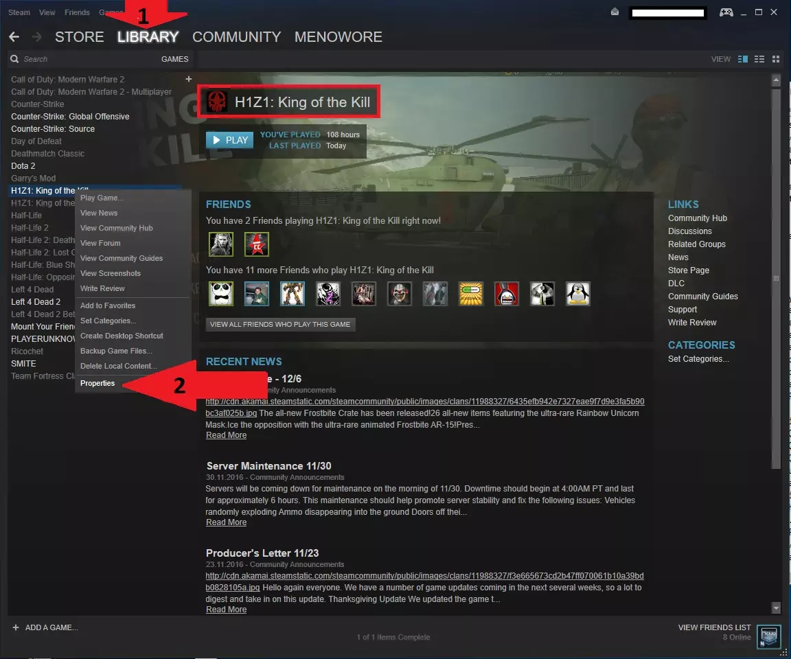 2. 进入《H1Z1:杀戮之王》的设置