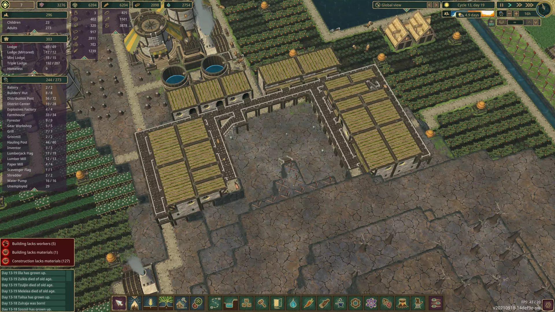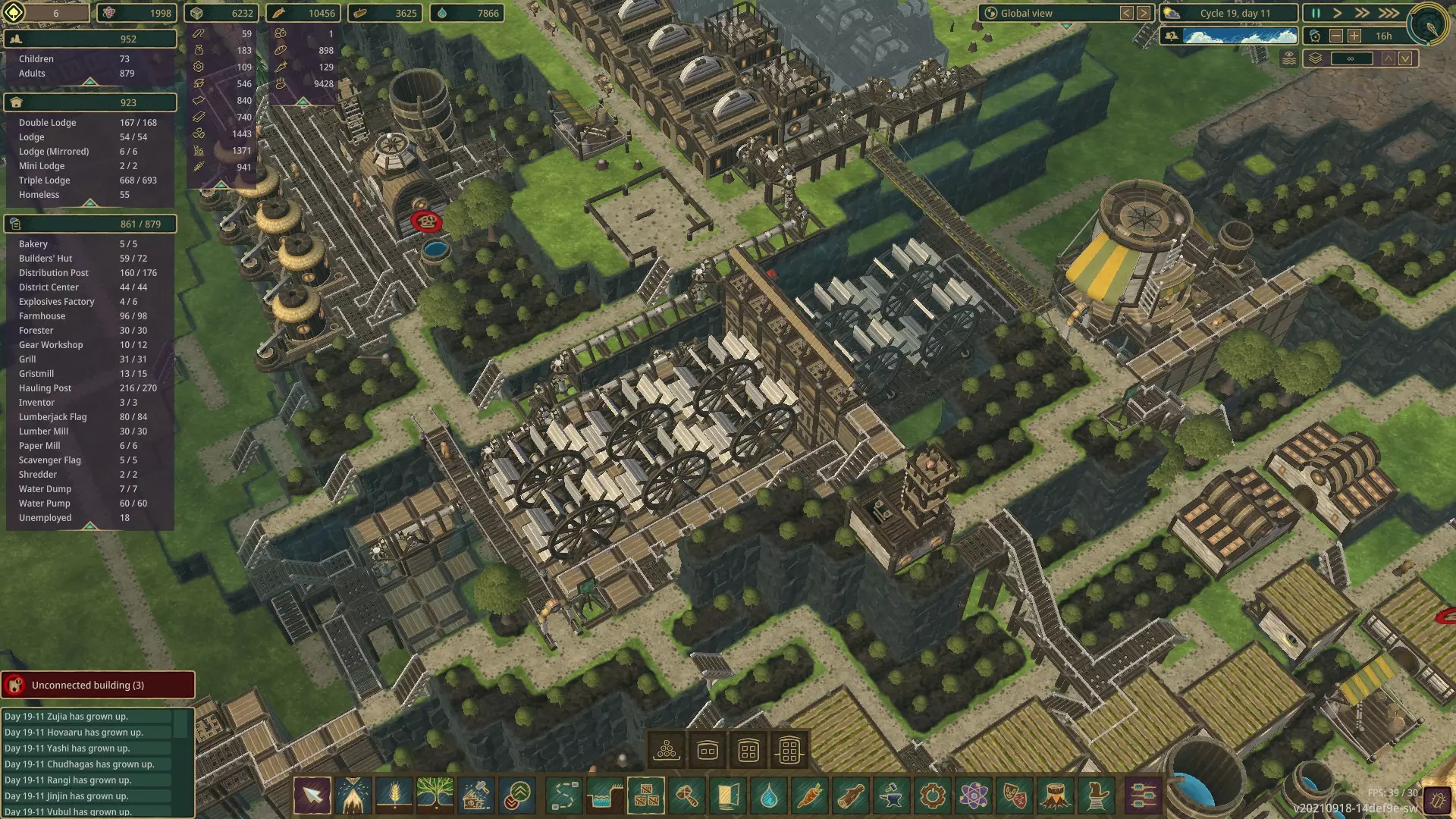 13) Builder Huts and Hauler Posts - You will need them, also when they're not building stuff, builders act as haulers, making it very worth building them. Haulers you will never have enough of until you build a very high population district, but can be run at 4/8 usually until you have enough unemployed or high hauling needs.