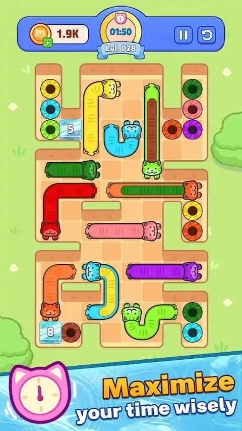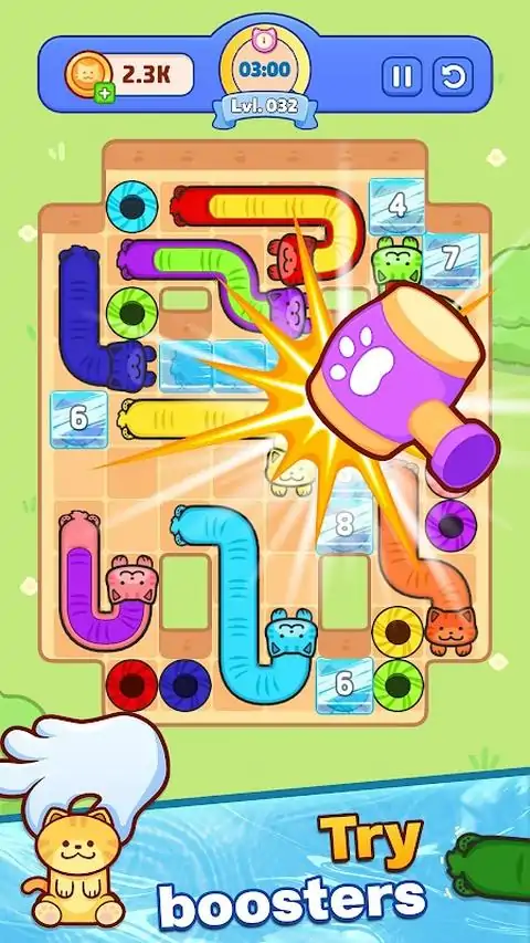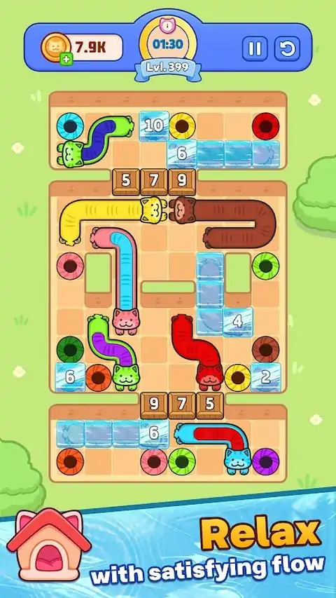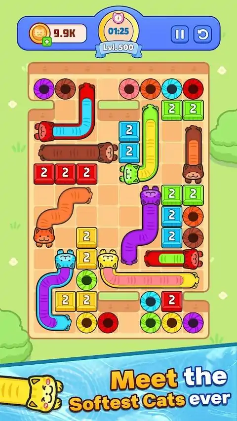 伸缩自如的猫咪、巧妙的操控、酣畅淋漓的逃脱——欢迎来到《液态猫咪逃脱》! 《液态猫咪逃脱》是一款可爱的猫咪益智游戏,你需要操控像液体一样的猫咪进行伸缩和滑动,帮助它们逃脱。在时间耗尽之前,你需要快速思考并规划好每一步,解开猫咪们的路径,引导每只色彩缤纷的猫咪到达正确的位置。 《液态猫咪逃脱》非常适合喜欢脑筋急转弯、逻辑谜题和猫咪游戏的玩家。它上手简单,精通却极具挑战性。这是一款趣味十足的消磨时间益智游戏,考验你的策略和速度。 玩法: - 从猫咪的头部或尾部拖动并拉伸它们 - 随着游戏区域越来越拥挤,避免阻挡猫咪的路径 - 将每只猫咪与正确的洞穴/位置匹配,即可通关 - 在规定时间内获胜,解锁更多挑战性关卡 主要特色: 独特的液态猫咪玩法:流畅、令人愉悦的滑动和拉伸体验。 色彩缤纷的可爱猫咪:在每个关卡中操控不同颜色和长度的猫咪。 烧脑关卡:逃脱式谜题,锻炼你的逻辑思维和计划能力。 ⏱️ 与时间赛跑:倒计时带来的紧张感,迫使你做出抉择。 易于上手,难于精通:简单的拖拽操作,却蕴含着丰富的策略,是解谜爱好者的不二之选。 休闲玩家和解谜爱好者的理想之选:关卡短小精悍,非常适合快速畅玩。