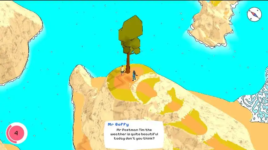 Reconnecting a dispersed communityUmbrella Postman is a small open world single player game made by a solo indie developer. The land used to be connected all together. Then one day a terrible earthquake (The Great Quake) which caused a tsunami, devastated the lowlands and flooded it. This caused the land to become disconnected. Anomalies began to appear causing
