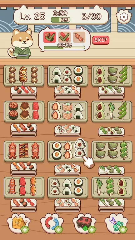 《美食分类》是一款趣味十足、令人满足的食物分类游戏,你需要将同一盘中的三个相同的烤串匹配起来,为顾客上菜。玩法简单,一旦上手就停不下来!