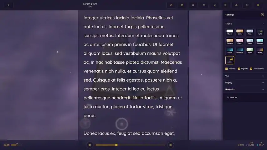 StoryMode是一款高度可定制的多格式漫画和电子书阅读器,融合放置/增量游戏玩法与成长系统。将文件上传到Library,开始你的故事!STORYMODE 放松身心,享受阅读。获取XP、Story Points、Stardust和Essence。从Novice升级到Legendary Chronicler。在旅途中发现Companions,吸收Tomes来了解他们的特性。提升Companions的等级,为他们装备Trinkets以强化能力。解锁Focus来塑造你的加成方向:Scholar、Merchant、Seeker,或保持Balanced。累积里程碑奖励。收集超过40项成就。一切按你自己的节奏进行。CUSTOMIZATION用Stardust购买外观自由搭配各种颜色、主题和独特的动态背景从丰富的选项中调整文本、显示和导航设置上传自定义封面,使用收藏夹整理个人书库READER完成任务添加带备注的书签用专注计时器规划阅读时段通过阅读统计追踪进度聆听放松的环境音效使用阅读标尺等无障碍功能自动章节检测IMMERSIVE MODESUPPORTED FORMATSEPUBPDFZIP等压缩文件格式漫画书档案(CBR、CBZ等)TXT、Markdown、HTMLSTEAM DECK SUPPORTTBA