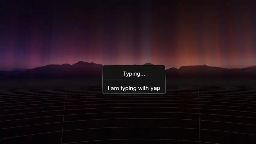 Yap is a speech-to-text application designed specifically for VR users. Replacing clunky virtual keyboards with simple speech-to-text in any PC application, through VRKEY FEATURES:• Real-time speech recognition in VR• Works across all applications• Overlay interface accessible from VR controllers• High-accuracy voice recognition• Customizable controller bindings• Background operation – doesn't interrupt your VR experience• text translation to 55+ languagesHOW IT WORKS:Yap Dictation runs as a VR overlay application that automatically starts with SteamVR. Simply hold B on your controller to start dictating — your speech is instantly converted to text and typed into your active application, with optional translation applied if