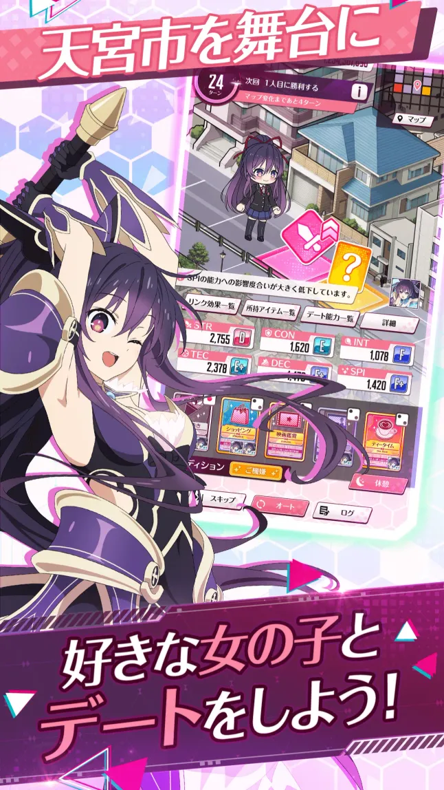 本游戏是一款以电视动画《约会大作战》的世界观为背景的养成模拟游戏,改编自全球销量超过600万册的热门轻小说系列。 玩家将扮演主角五河士道,通过与精灵进行“约会”来收集记忆并培养它们。约会的成败取决于玩家的选择,而精灵的“成长”则决定了它们在“战斗”中的优势!游戏还将包含许多原创元素和原创插画。 “现在,让我们开始我们的(约会)战争吧!” 【剧情简介】 外表看似人类少女的精灵,与人类截然不同。 这些精灵拥有强大的力量,当它们从邻近世界现身时,会引发名为“空间震”的灾难。 对抗这种威胁有两种方法:用武力消灭它们,或者—— “和它们谈恋爱,让它们爱上你!” 高中生五河士道拥有封印精灵力量的能力。 士道拯救了无数精灵,但新的威胁和精灵正摆在他面前。