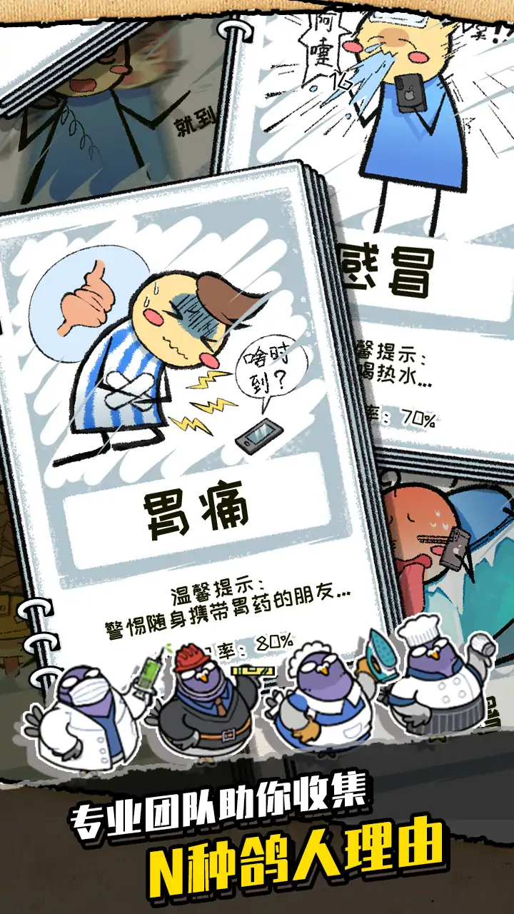 你将接手一家魔性鸽子工厂!专门为“放鸽子”大师们提供各种奇葩借口。从孵化、饲养到把鸽子“撸秃”,体验搞怪又上头的放置经营。轻松挂机也能赚金币,解锁千奇百怪的鸽子图鉴,一起修炼成终极鸽子精吧!咕咕咕~