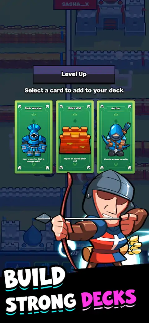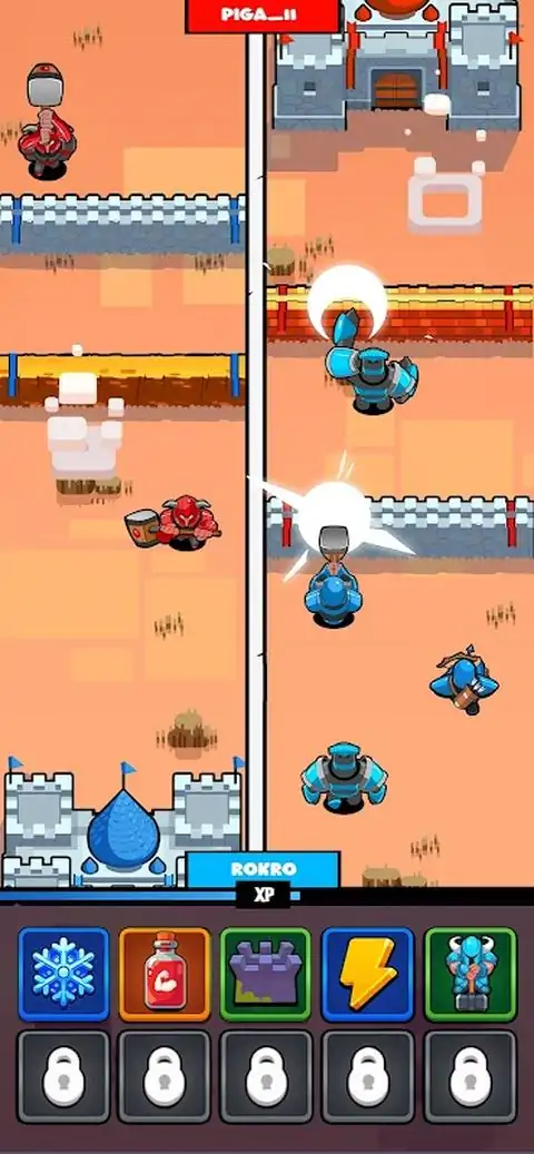 保卫你的城堡。突破敌人的城墙,摧毁敌人的城堡,赢得比赛。 城堡突袭是一款快节奏的多人攻城游戏,两名玩家同时进攻和防守。当你的军队向前推进时,你的对手也在做同样的事情。 目标很简单:在敌人摧毁你的城堡之前摧毁他们。 它很容易用一只手上手和玩,但获胜需要明智的选择、良好的时机和正确的牌组。 它是如何运作的 - 突破敌人的城墙到达他们的城堡 - 保卫自己的城堡免受攻击 - 使用士兵卡、墙卡和能量卡构建套牌 - 用金币和副本升级卡牌,使其更强大 - 超越对手并赢得比赛 特点 - 与其他玩家进行实时多人战斗 - 简单的单手控制,玩起来感觉很自然 - 奖励明智选择的卡牌和套牌构建系统 - +20张不同的卡片和添加 - 明亮、干净的视觉效果和流畅的动画
