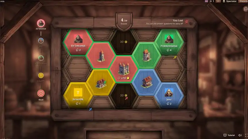 Tavernia is a multiplayer strategy trivia game set in a medieval tavern. Players fight for territory by answering questions and playing minigames.