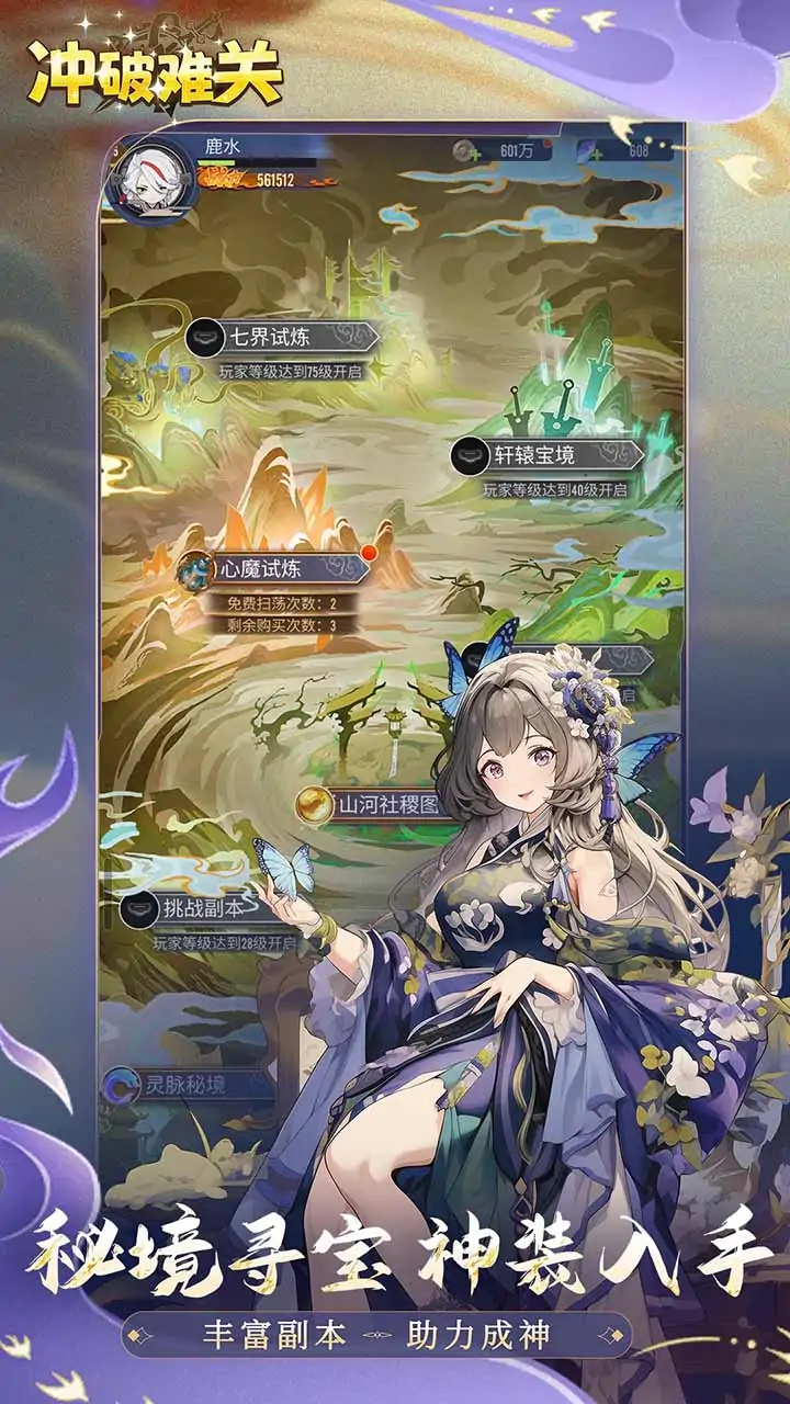 当金箍棒划破苍穹,当莲台缀满星尘,一段湮没于古籍的西游秘辛悄然苏醒……《冲破难关》以水墨浸染的东方画卷,重绘三界众生。你将漫步于蟠桃仙林,驻足于幽冥忘川,邂逅那些熟悉又陌生的身影——执念入骨的金蝉子,踏碎虚空的六耳,垂眸浅笑的观音……指尖轻触,仙法交织;阵法变幻,因果轮回。无需奔波劳顿,自有云海托起修为;不拘俗世纷扰,只在此间静观潮生。愿君在此,寻回一缕遗落云端的禅意。
