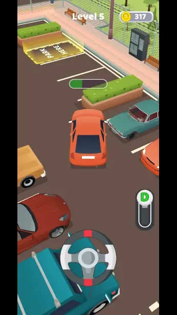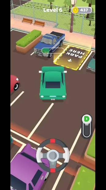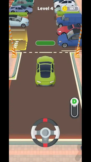 这是一款考验你驾驶技巧的游戏。每个关卡的目标都是将车停入指定车位。操作很简单:首先选择档位——前进或后退——然后握住方向盘的左侧或右侧来控制车辆行驶。小心别撞到其他车辆或障碍物!