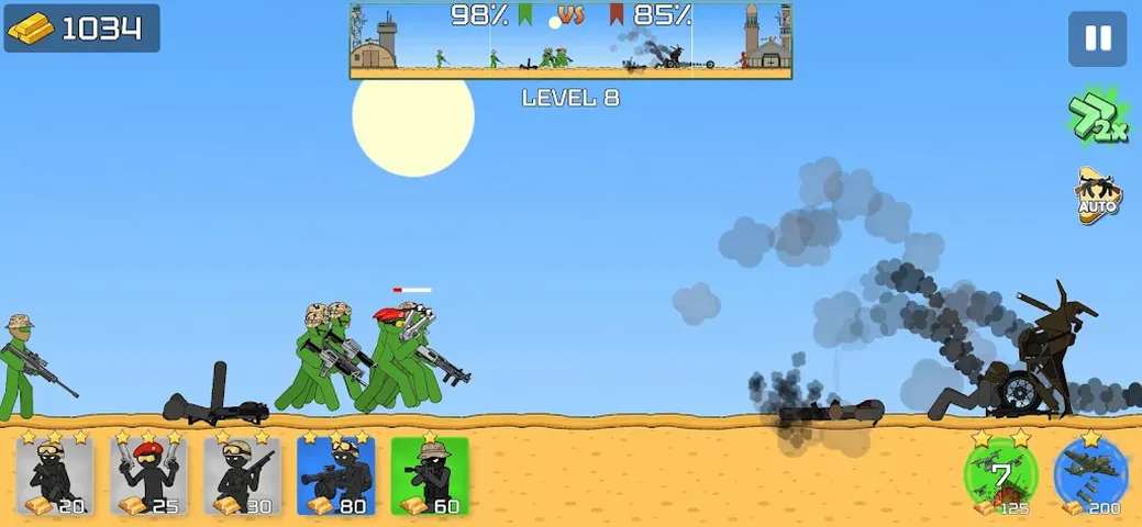 《火柴人布娃娃现代战争》是一款激动人心的火柴人策略游戏,融合了塔防机制和滑稽的布娃娃物理效果。 指挥你的火柴人军队,保卫你的基地,在激烈的现代战争中称霸战场。每一场战斗都需要明智的决策—单位选择和精准的时机把握决定着胜利。 布娃娃物理效果让战斗充满变数,也带来十足的快感—每一次攻击都酣畅淋漓。 游戏特色: - 实时策略玩法 - 基地防御和进攻战斗 - 逼真的布娃娃物理效果 - 多种单位和现代武器 - 自动战斗和快进模式 - 支持离线游戏 进入现代火柴人战争的世界,展现你的战术才能!