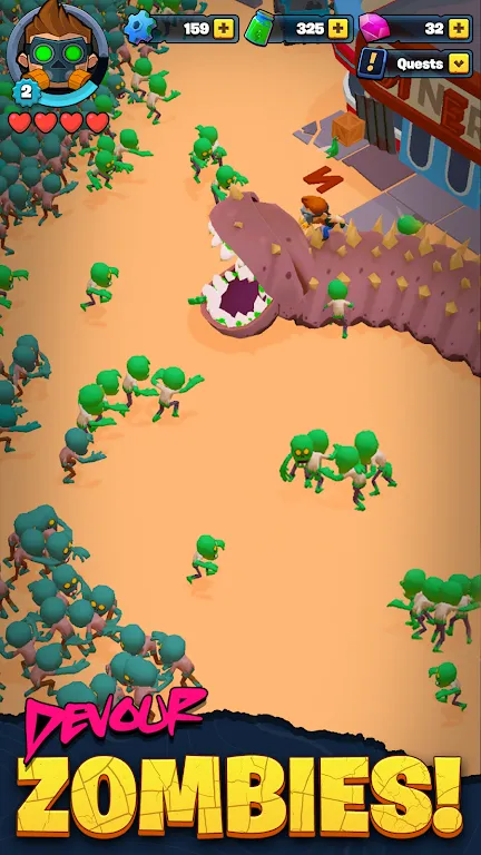 欢迎来到《末日蠕虫:僵尸来袭》!骑上你值得信赖的沙虫,抵御僵尸入侵! 世界已沦为沙漠荒原,而唯一安全的出路就是骑着你的变异沙虫,在僵尸大军的包围下奋力前行。在《末日蠕虫:僵尸来袭》中,你将探索荒原,寻找你的家人。帮助幸存者,解锁新区域,并击败史诗级Boss,同时提升你和你值得信赖的沙虫的能力。在荒原上找到新的安全区,努力拯救人类! 探索并击败僵尸荒原: 沙虫的力量:骑上你值得信赖的沙虫,开启你的旅程。帮助它们成长壮大,并解锁史诗级能力,击溃僵尸大军。 勇闯废弃建筑:徒步探索文明遗迹,勇敢面对与潜伏其中的敌人进行肉搏的危险。 恢复失落的科技:启动无线电塔,修复采矿设备,并积累科技,帮助扭转濒死文明。 对抗史诗级Boss:升级你的技能,挑战史诗级Boss,但要小心!别让他们把你打得像煎饼一样扁。 拯救迷失的幸存者:找到并拯救被丧尸大军围剿的幸存者。通过完成任务和重建安全区,帮助他们茁壮成长。 深度动作机制:掌握特殊攻击,学习敌人的攻击模式,增强实力,称霸丧尸大军! 准备好探索废土了吗?立即下载,开始拯救人类吧!