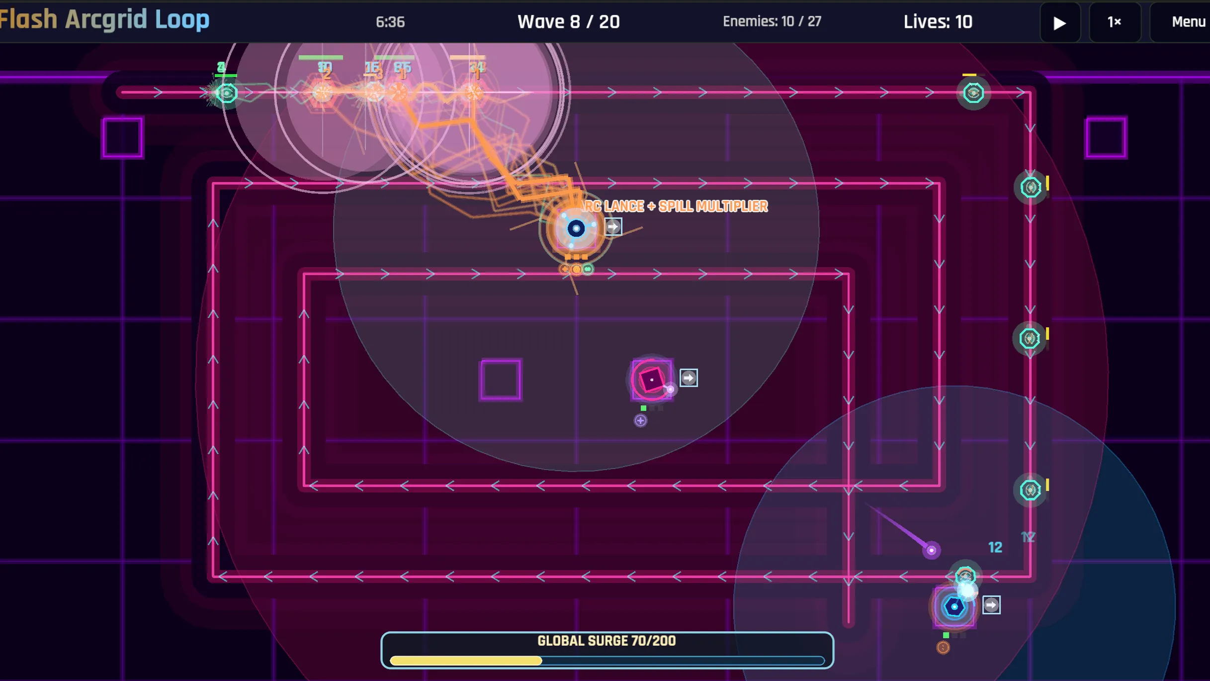 插槽理论:防御是一种极简主义的塔防,所有决策都在波次开始前就已经完成。 从五张牌中选一张。制定你的策略。看浪潮展开。 游戏时间是15到30分钟。 工作原理 • 每波从5张牌中抽一张牌 • 放置塔和堆栈修饰符 • 全部20波浪 5座具有不同角色的塔楼: 快速射手——高射速,低伤害 重炮——速度慢但击中如卡车 标记塔——标记敌人以增强来自各来源的伤害 电弧发射器——附近敌人之间的锁链 裂隙工兵——植根蓄力地雷 10个以惊人方式组合的修正: 连锁反应、分弹、利用弱点、动量、过度杀伤、冷静射击、对焦镜头、发光触发、过度伸展、反馈循环 装甲敌人和快步行者会在游戏中段出现。 六个名额很快就会被填满。 选秀时间越来越紧。 特色: 以风力驱动的塔防:每一波比赛都以一个有意义的选秀权开始。 叠加协同效应: 把5座塔和10个修正合并成专注的构建。 浪涌系统:通过战斗积累能量条,触发高强度的激增和全球激增时刻。 无微观管理的策略:你的规划比APM更重要。 地图多样性:玩3张手工制作的地图和一张程序生成的随机地图。 难度选项:简单、正常和困难。 解锁进度:通过地图清理解锁电弧发射器、分射和裂隙工兵。 动态构建身份: 游戏会根据你的策略生成独特的构建名称。 排行榜:争夺最佳通关、最快清怪和最强构建。 可及性: 色盲模式和减少的运动选项。 桌面 + 移动端:Android上的触摸控制、相机缩放/平移和移动会话恢复。 在PC上体验最佳。而且在手机上也能完全游玩。 软启动演示。核心游戏是完整且可玩的。欢迎反馈。