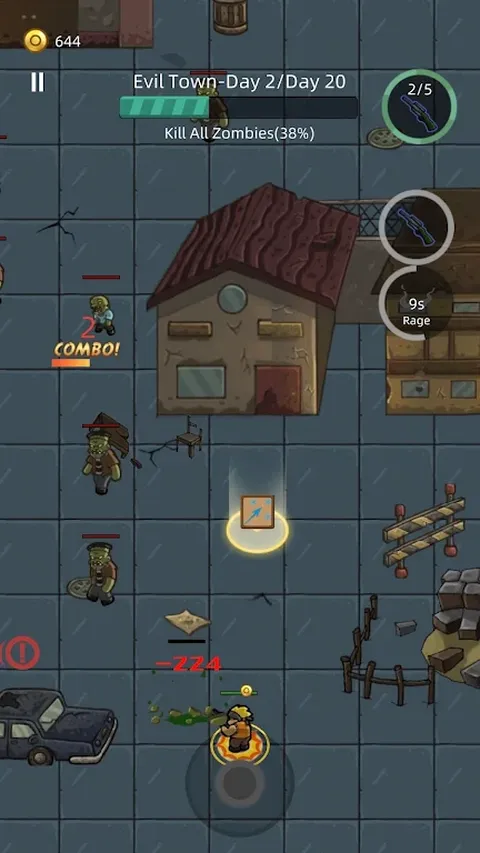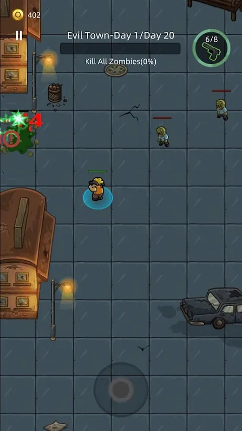 在邪恶小镇的僵尸爆发中生存!在这款自上而下的战术射击游戏中,升级你的能力,解锁强大的武器,并面对无尽的僵尸浪潮。