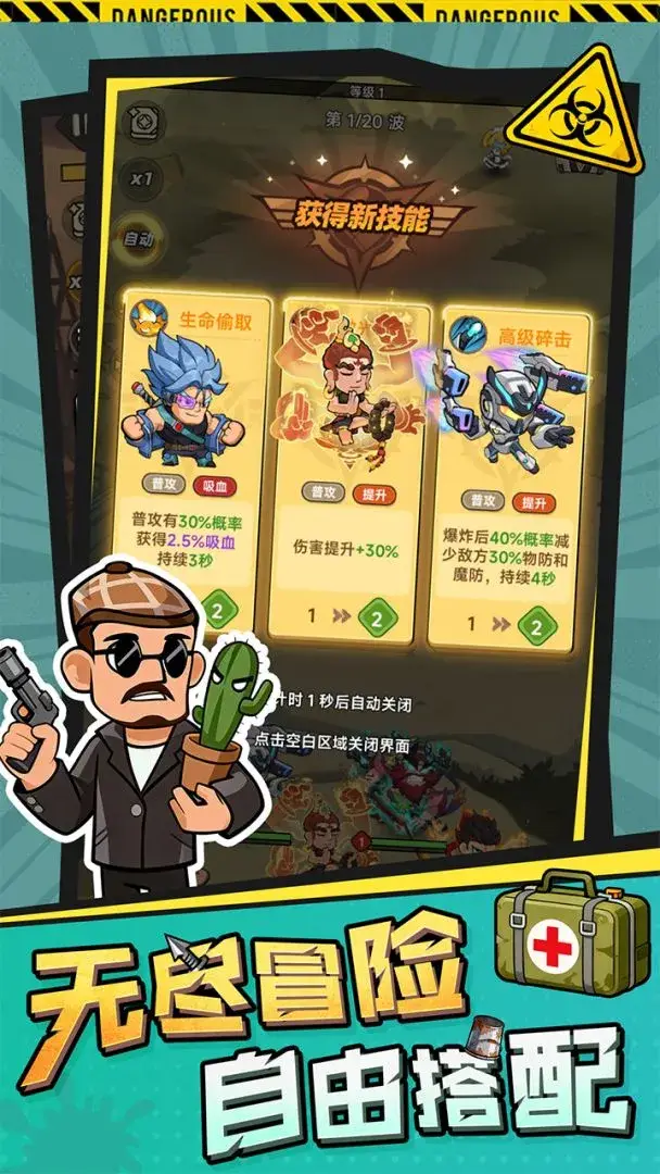 求生之城生存守则 亲爱的幸存者,欢迎来到“求生之城”!这里是末日世界唯一的生存庇护处,一个充满随机未知的末日狂欢之城。 为了确保各位幸存者在求生之城的安全,入住求生之城后,请遵守以下的规则: 一、遇到丧尸与变异体,不必惊慌逃跑,招募集结英雄,为你开路。齐天大圣、英叔等英雄身影并非幻象,他们是来自不同时空的守护者,解锁他们的炫酷技能,会成为你最强的求生底牌; 二、每一局求生都不会超过3分钟,若你感受到战局冗长,那一定是你忘记了随开随停的生存技巧,通勤、午休的碎片时间,才是这里的求生挑战时刻; 三、局内的随机副本、卡牌掉落与未知事件并非陷阱,坦然接受这份随机,你会收获欧皇抽卡的惊喜,甚至实现极限翻盘,未知才是求生的乐趣; 四、若感到孤身求生枯燥,务必找到志同道合的战队与好友,并肩对抗BOSS是同盟铁律,抱团才是末日的生存王道; 五、最后一条,放下对末日的刻板认知,在这里,生存从非苦旅,整活到底、快乐求生,才是你需要坚守的唯一真理。 【游戏特色】 ——丧尸围城,开启求生 化身幸存者指挥官,指挥和部署来自各个时空的魔性英雄,他们造型清奇、技能百变,对抗各种鬼畜奇特的生化怪物,守护最后的求生之城! ——三重玩法,轻松上头 Roguelike随机技能+割草清屏爽感+塔防策略守线,局局不重样,把把有惊喜。超爽技能,花式清屏!3分钟一局,随开随停,摸鱼休闲最佳伴侣! ——鬼畜画风,有趣到底 经典英雄再(沙)现(雕)救(搞)世(怪),穿三角裤的不一定是超人,也可能是内裤侠!角色魔性,技能逗趣,末日阴霾?不存在的!全程欢乐整活,轻松解压。 ——阵容自主,养成自由 五大职业体系,全输出爆发流、全控制控场流、全辅助邪修流……怎么奇葩怎么来!自由布阵、装备拆装,没有固定套路,只有你的脑洞说了算。 ——战队集结,快乐加倍 加入战队,与战友并肩作战,共同对抗危机,拒绝自嗨,共享胜利,让末日求生不孤独!