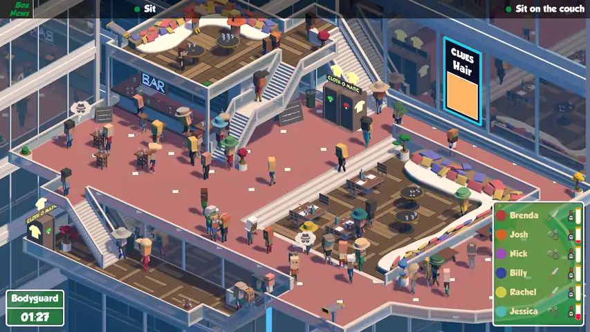 # Hitmen Party - fast-paced local multiplayer game Join the ultimate hitmen party - a fast-paced and hilarious local multiplayer game for up to 6 players. Blend in, hunt down the target and outsmart your friends in the race to become the best hitman. Experience the thrill of multiple game modes: from the classic Hitman mode to the unique challenges of Dress-up and Bodyguard, there's always a new way to beat your friends! Get creative and stay incognito in Hitmen Party's interactive world! Fish by the river, sit quietly on a bench, drink at the bar or eat at a table - use these interactive elements to trick your opponents and avoid detection while you track down the target. # Game modes BODYGUARD Hitmen unlock clues by interacting with the world to find and kill the target. Bodyguards are here to identify and stop them. HITMAN Spot the target on the screen and kill it before other players do! HUNT Hunters need to eliminate the hunted. DEATH MATCH Eliminate all other players - but don't kill innocent passersby! DRESS-UP! Be the first to wear all the clothes displayed on the target screen by killing the pedestrians that have them! KILL THEM ALL Extermination: kill everything that walks! When there are only players left, the round goes into battle royale mode.