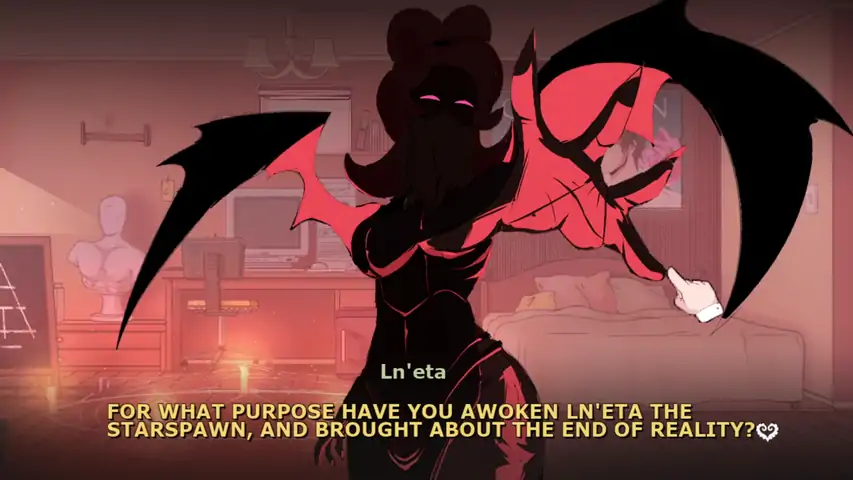 # 可爱的神秘存在 痴迷于神秘仪式的你,终于入手了得以召唤困扰着你的梦境的异界恐怖存在的最后一件所需物品:一本明亮粉色的奇怪死灵之书(Necronomicon)。你执行了这本书上唯一一个看起来不像是疯狂呓语的仪式,不经意间召唤出了 Ln'eta,一位可爱的克苏鲁模样的女孩。她同意你的接吻,但条件是你需要再为她完成书上的几个仪式。于是你再次将目光投射到死灵之书上……你发觉你竟然能看懂其他页面上的文字了!? # 特色 - 内容丰富,包含三个满载了欢笑,尖叫与眼泪的章节! - 你做出的每一个选择都将大幅度影响游戏,决定你将会看到的结局! - 满载各种游玩要素,对电子小说种类的沉浸式重新诠释! - "三位" "全语音" 的 "少女" 等着你来 "攻略"。 - 能让人联想到经典动画与恋爱游戏的独特画风及曲风! - 完全没有恐怖或危险要素