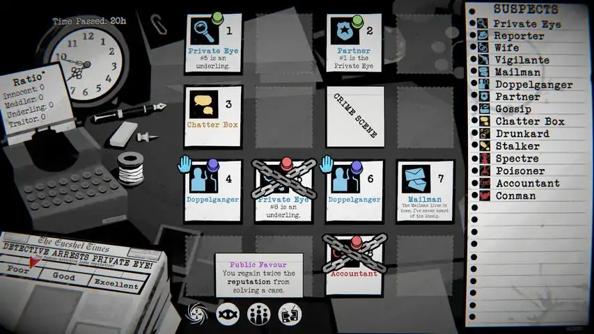 This is the demo for Dupery!In this detective deduction game, uncover information by investigating the locals then use that information to deduce good from evil. Discover who is part of the evil syndicate as you travel through one of the full game’s regions, all while maintaining your reputation and evading the syndicates attempts to deceive you. Explore three demo quirk challenge modes and test your deduction skills!As you solve each case you’ll be presented with boards containing a selection of suspects from over 40 roles each with unique mechanics and