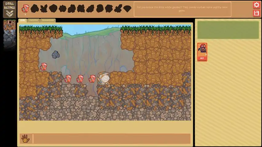 A clicker where you delve into the depths of the earth!Check out the free demo of Drill To Hell in its first two levels!Begin by digging the dirt with your handsBreak the blocks by clicking on them and collect the gems. Deeper down are rocks that take longer to break but contain rarer