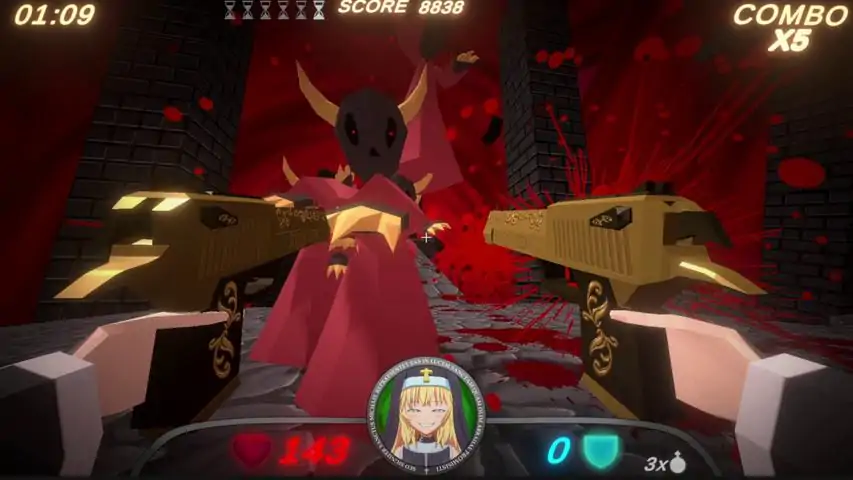 Guns and Nuns 是一款老派 FPS 游戏,您在其中扮演修女安吉莉卡·阿玛迪斯,驾驶两只金色沙漠雄鹰冲进地狱,用信仰的力量消灭恶魔,并通过奇异重力场的奇怪阶段。你的目标是在计时器耗尽前尽可能多地杀死恶魔。你可以打破散布在每个关卡的沙漏来延长计时器。快速击杀恶魔会开启连击链:连击次数越多,得分越高。快速击杀恶魔会使修女进入“神圣时刻”模式,使她成为精神变态者,她的枪械威力更强,并让你在该状态下获得额外积分。独特的重力系统,打造独一无二的地图供玩家探索。纯粹的街机乐趣,没有弹药或复杂的剧情,纯粹的游戏体验。每张地图都有独特的敌人。每个关卡都有优美的摇滚乐。给恶魔带来无可挑剔的伤害和痛苦。低多边形美学。 您扮演安吉莉卡·阿玛迪斯。